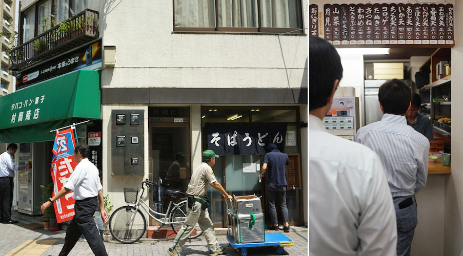 セルフサービスの小さな蕎麦屋で、旨い以上にとても正直。化学調味料をまるで使わず、かつお節や雑節、昆布にいりこと天然素材だけで出汁をとっている。