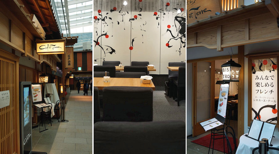 江戸の風情の商業施設。日本家屋のしつらえの中にモダンなビストロ造り。