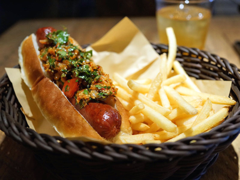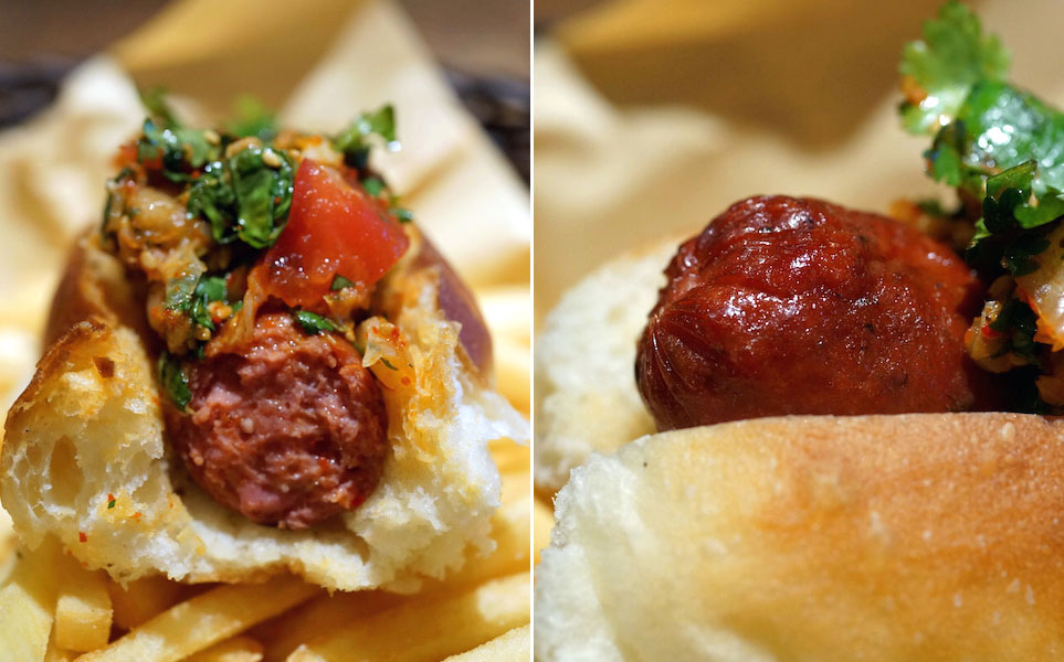 ハラペニョを混ぜて作ったビーフソーセージで、ザックリ歯切れる。妙なモノでカサ増ししない肉そのものを食べてる感じがおいしくて、肉の食感、肉の味わい、そしてビリリと突き抜けるような辛さがあとに持続する。