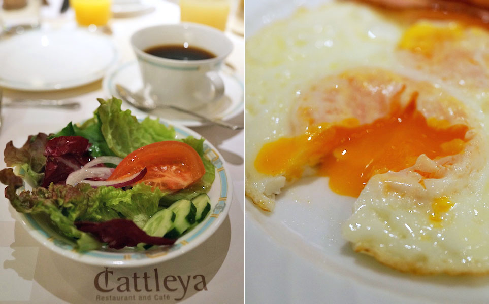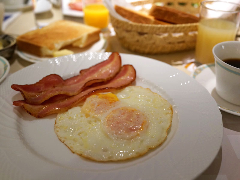 コーヒーショップの朝のメインはバフェではあるけど、お願いすればテーブルサービスでアメリカンブレックファストを作ってくれる。