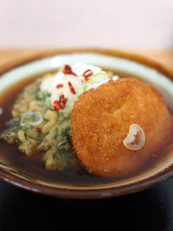 まずはコロッケをザクッと崩し、中のジャガイモを出しまみれにする。トロンと出汁とまじってとろけて蕎麦にからみつくのも旨い。