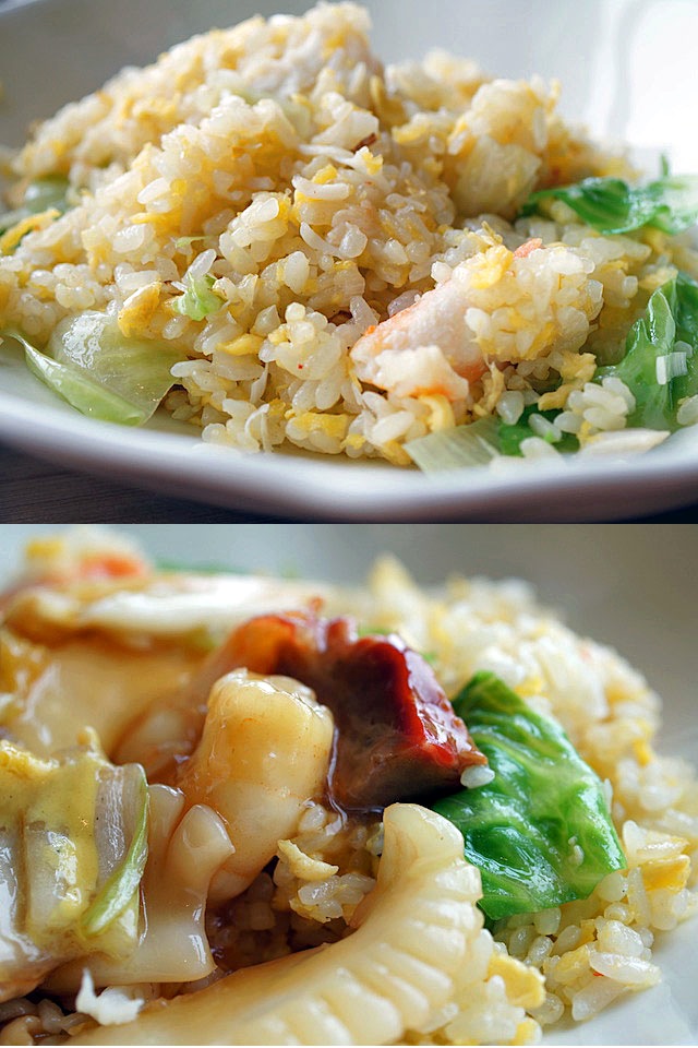 そのパラパラをたのしんで、残り二口、三口分にあんかけ焼きそばの海鮮あんをのっけて食べる。