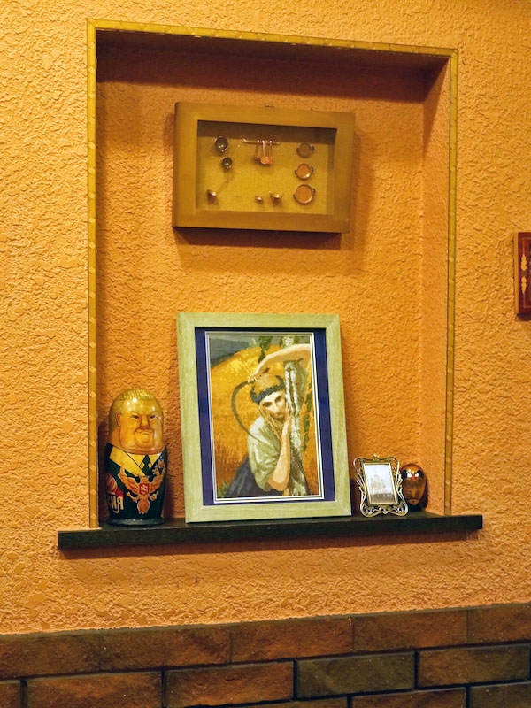 スイスシャレー風の外観に、ゲルマン風のドッシリとしたインテリア。古ぼけてはいるけれど見事に磨かれ、愛着持って使い込まれた椅子やテーブル。