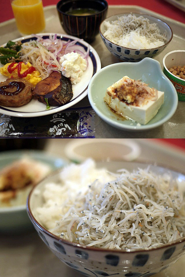 納豆に関西風の味付け海苔が共存している、つまりココは東日本と西日本の境目近く…、って感じがたのしい。