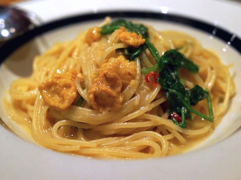 ペペロンチーノの香りがつよくて、ウニの風味がたのしめないのがちょっと残念。パスタの茹で具合はいいのにねぇ…、って思いはするけど、いいお店。
