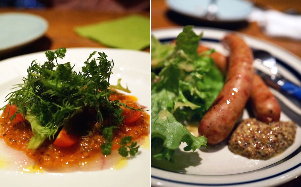 ソーセージのグリルもパリッと、歯切れて肉汁、なかなか旨い。