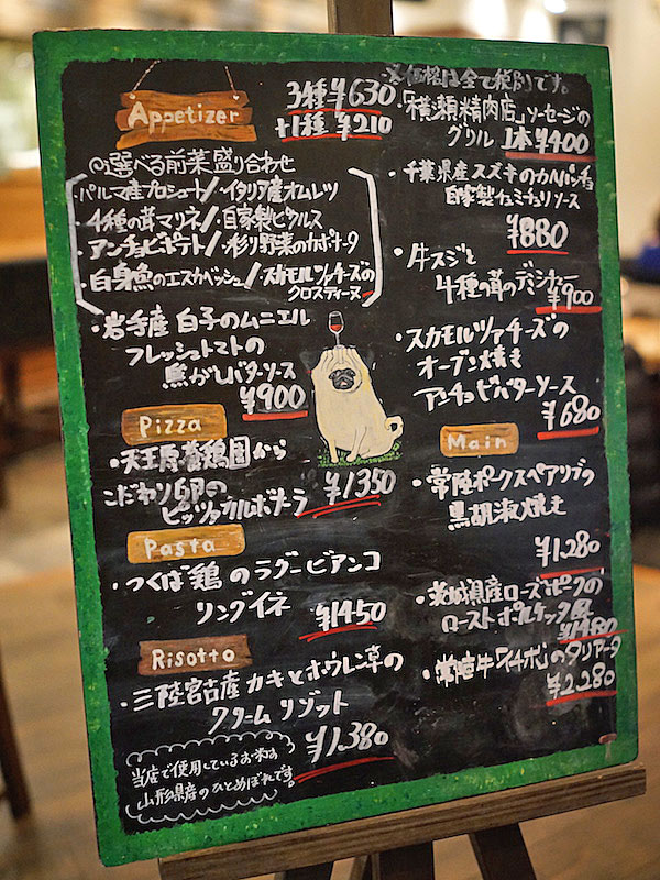 イタリア料理とフランス料理。その両方がバランスよく揃えられてるメニュー構成もほどよくて、なにより黒板メニューの魅力的なコト。
