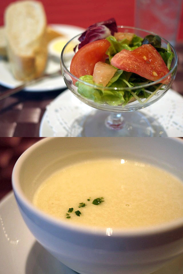 素材そのものの持ち味だけで作ったスープで、だから一口目にちょっと味が足りなく感じる。