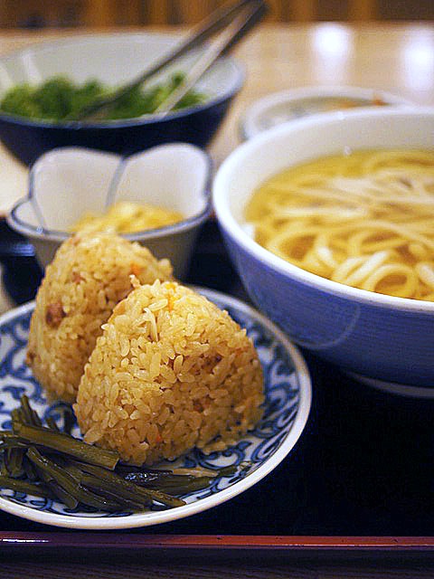 ごぼう、ニンジン、かしわの刻んだ具材がまじり、口の中でちらかりヌメらかうどんと好対象な食感たのしい、オキニイリ。