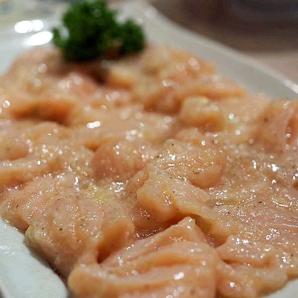 焦げると脂と一緒になって、初めて甘みに変わる趣向にて、肉のうま味を最大限にたのしむコトができて良い。