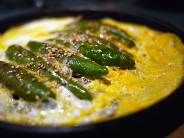 味付け玉子をザザッと流して熱をとおした、つまり唐辛子の卵焼き…、みたいな食べ物。
