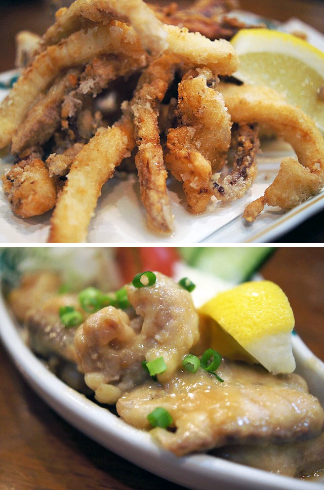 イカの胴体を刺身でほとんど食べ尽くし、耳と足の部分を揚げてもらう。