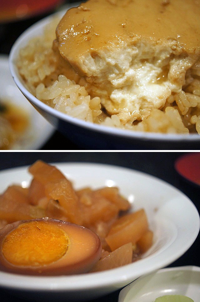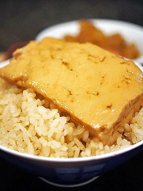 おでんの出汁で煮込んだ豆腐を、茶飯の上に乗っけるだけ。