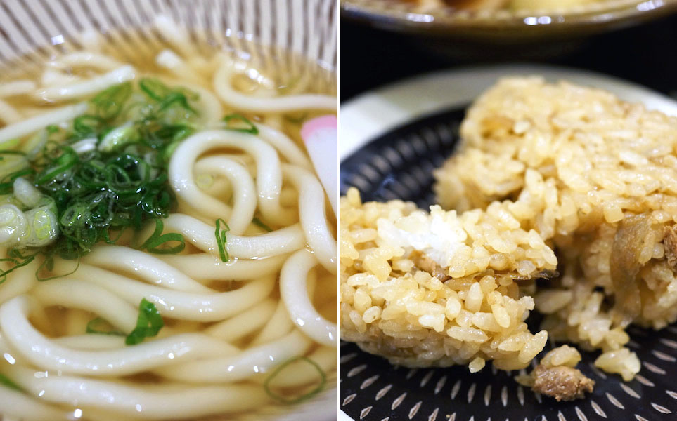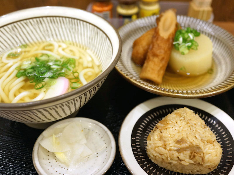 ハーフうどんに、かしわ飯で作ったおむすび、それからおでん。