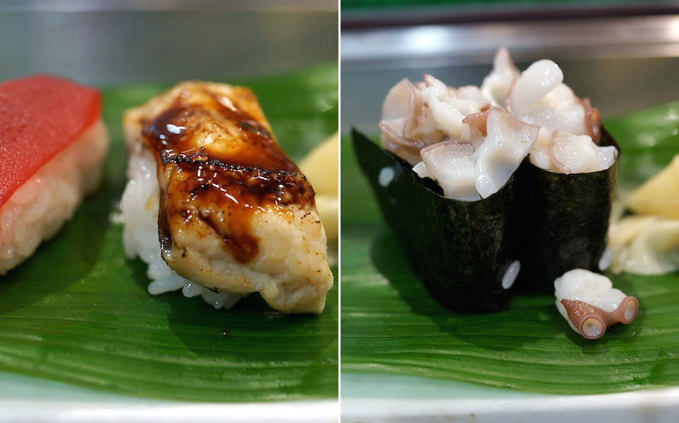 それからマグロ。赤身がとてもおいしげで、それをたのんで一緒に穴子。