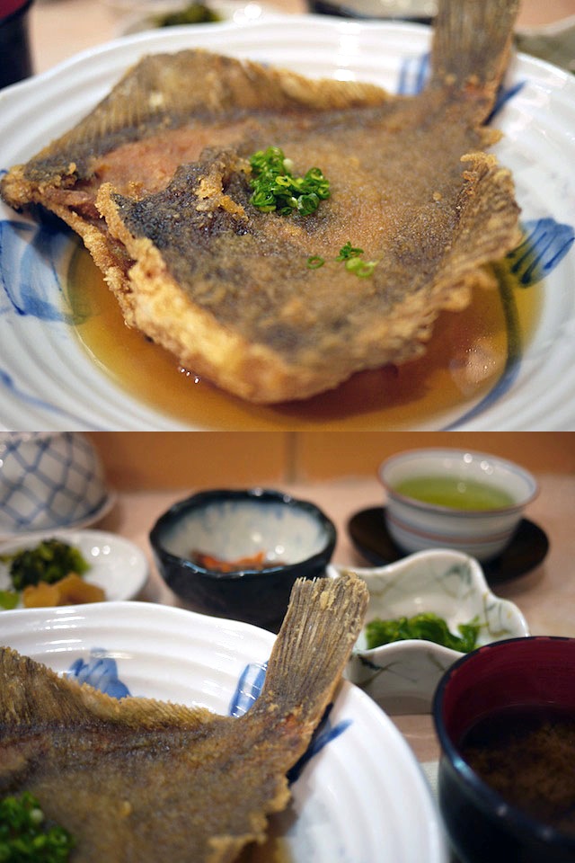 カレイの揚げおろしというココの名物。