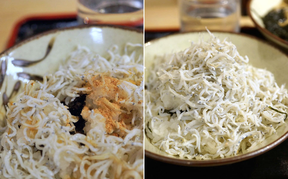 250円という値段にして、このタップリの釜揚げしらす。しらすの下にはきざんだ海苔をタップリ忍ばせ、それだけ食べても十分おいしい。