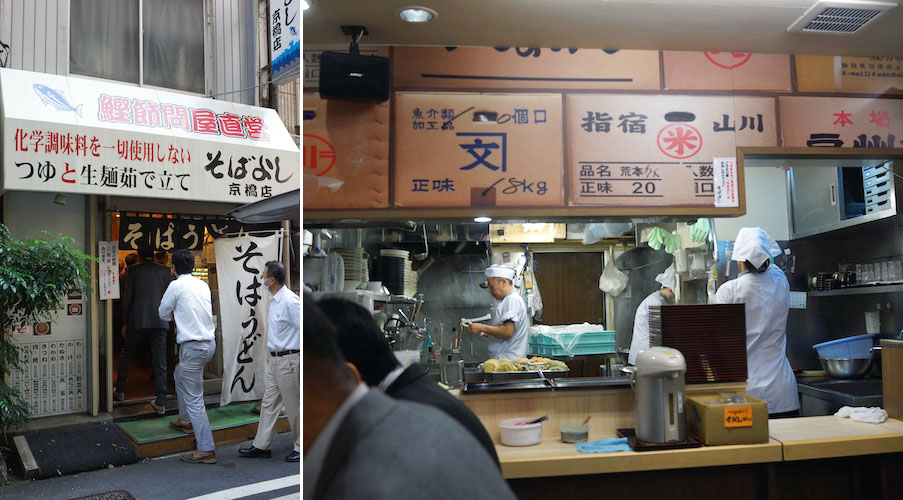 「そばよし」っていうセルフスタイルの繁盛店で、ランチタイムには続々、近所のサラリーマンがやってくる。