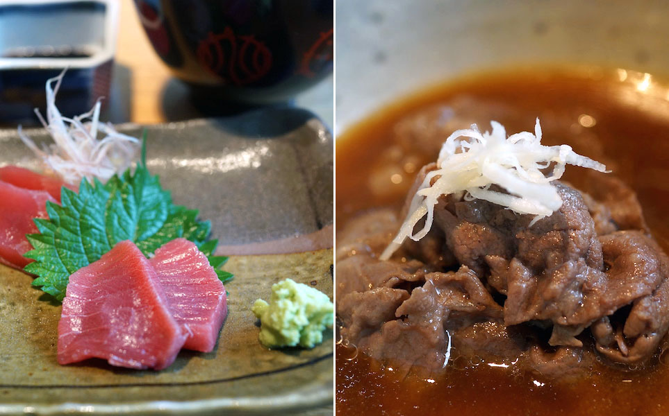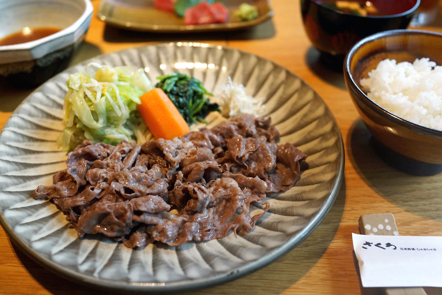 肉の薬味に千切りにした山わさびというのが粋。しかもそれを酢で洗い、辛味と酸味で肉の風味をスッキリさせる。醤油のタレがついてきて、それをタップリ浸して食べると、ご飯のおかわりはもう目前。