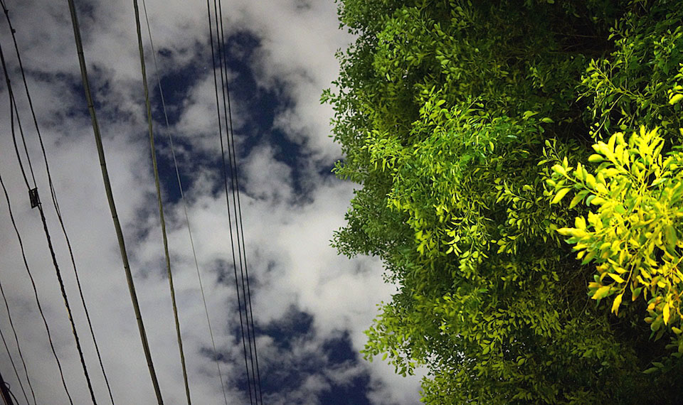 夜になっても雲の向こうがまだ明るくて、風がざわりと木の葉を揺らす。