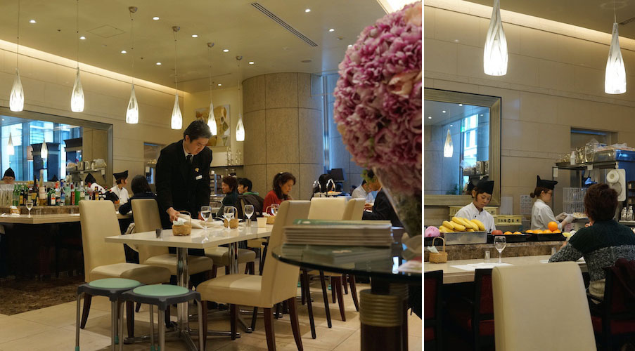 三井様のご大層なビルの中。上にはマンダリンオリエンタルホテルを頂いて、天井高い重厚なガラスの箱の中に作られたフルーツ王国。…、そんな店。