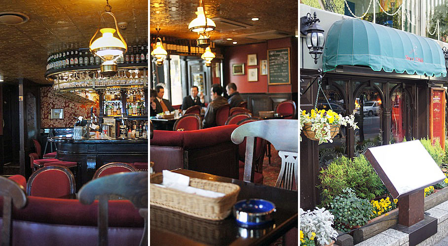 赤いビロード張りの椅子にマホガニーのバックバー、洋酒の瓶がズラッと並んでスコッチウィスキーを片手にパイプ煙草をくゆらせたくなる男の空間。