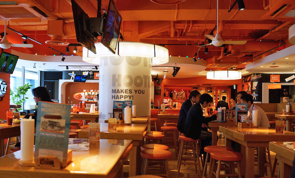 謳い文句が「Best Breasts and Wings in this Town」。 売り物がチキンウィングで、だから街一番の胸肉と手羽がある店と訳すこともできるのだけど、チキンブレストは商品になく、つまりこのブレストは「オッパイ」と訳す方が居心地のいい店。 チアーガール姿の女性スタッフが、満面の笑顔で提供するサービスこそがココのメインの商品で、これも一つの肉の勉強(笑)。