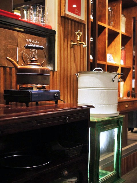 差し湯を沸かす可愛いやかんに可愛いコンロ。