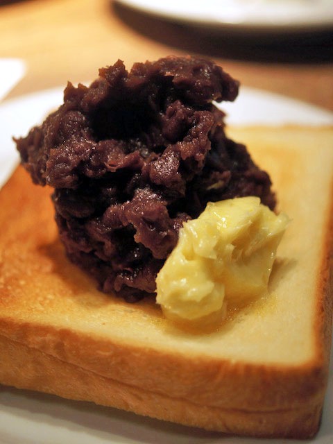 アンコもバターと一緒にコンモリ盛って、これをキレイにパンに塗ったら名古屋名物のアンコトーストになるんだろうけど、こうしてみるとちょっとケーキのように見えたりするのがステキ。