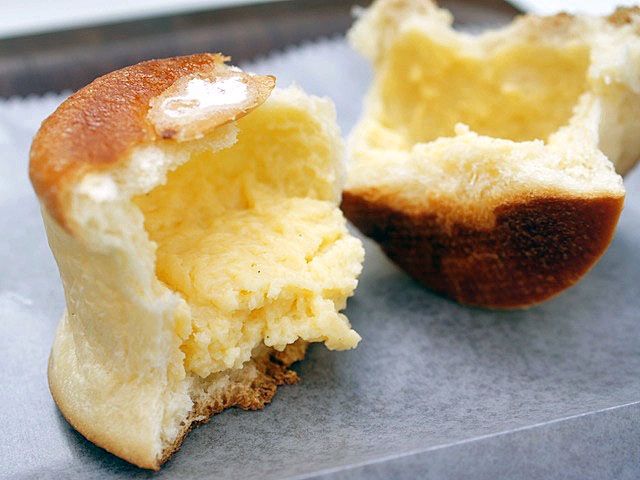 あるいはスフレが固まりピタッと成長とめてしまったような形がオモシロク、割って見たらば中は空洞、結構しっかりしたパン生地で、どうやって焼いたらこんな風になるんだろう…、ってワクワクしながら味わった。