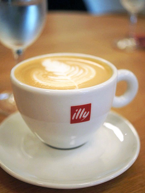 ほどよく熱くポッテリとした泡までおいしいカフェラテの味は最高。