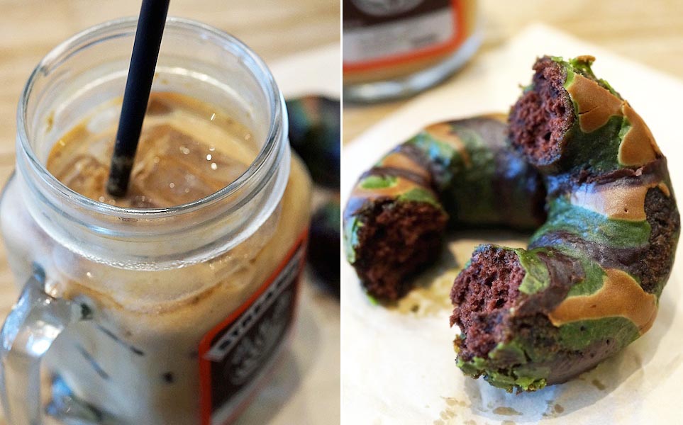 苦味ではなく豆の甘みと旨みを上手にひきだすタイプのエスプレッソ。それをミルクとカップに注ぎ、上にコーヒーパウダーをタップリのせて覆ってやると、行き場をなくした泡がたまってブクブク大きなアバタを作る。