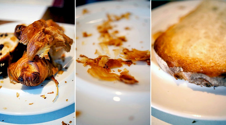 バスケットに入れた10種類ほどのパンをどうぞと持ってきてくれ、全部食べたくなるところ、クロワッサンとデニッシュ・ペストリー、それからレザンを選んで食べる。