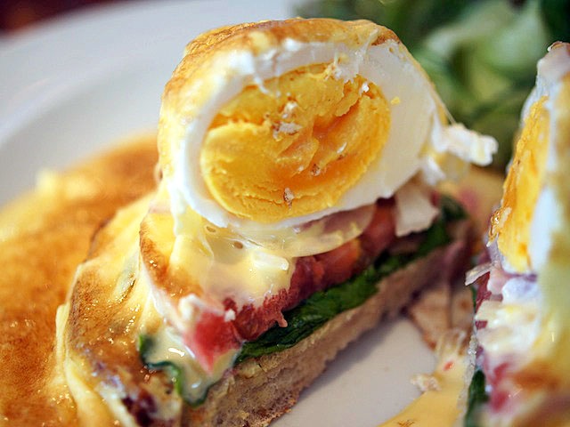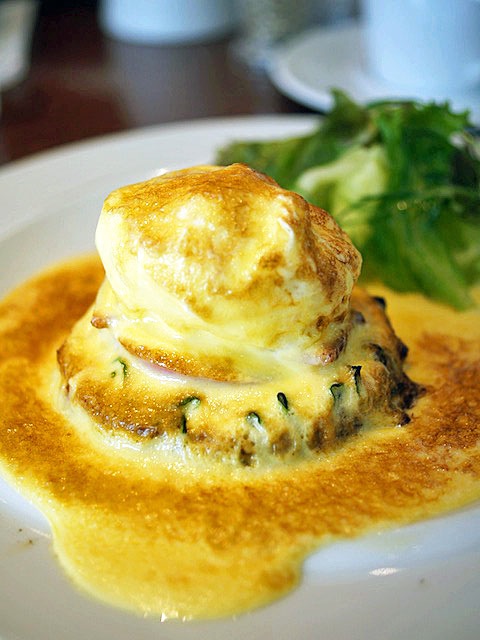 オランデーズソースをポッテリたらしてかけて、オーブンで焼きソースの表面がこんがり焦げてる。