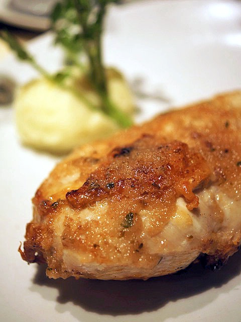 胸肉好きでだからそれを迷わず選び、ガーリックバターソースで表面カリッとやかれたメインのドッシリとして見事なコト!