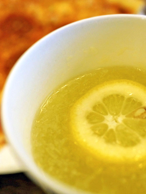 しかも温かいのをお願いしたら、レモンを一個、そのまましぼってレモンの粒が上にフワフワ浮いたモノ。