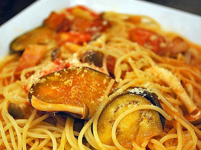 それを芯にして麺をグルリとまきつけて、一緒にパクリと口の中へと放り込み、もぐもぐ食べると口の中で昔なつかしナポリタンの味になっていくのがたのしい。