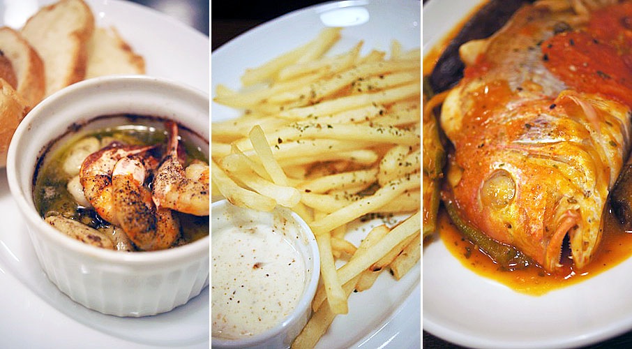 エビやにんにくをオリーブオイルで煮る「アヒージョ」を、ハーブ混じりの塩でアレンジしたもの。