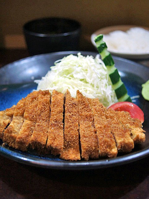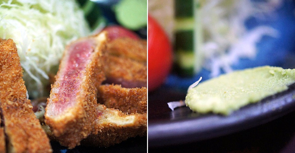 すりゴマをタップリ入れたウスターソースのようなソースもあるのだけれど、ココのお薦めの食べ方はわさびを乗っけて醤油で食べるという食べ方で、これがおいしい。