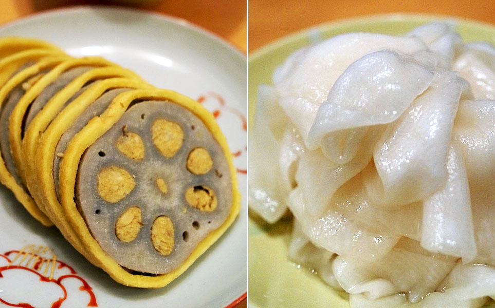 辛子蓮根のおいしそうなのをみつけてそれをお供に飲んで、千枚漬けを今日もシャクシャク、歯ざわりたのしむ。