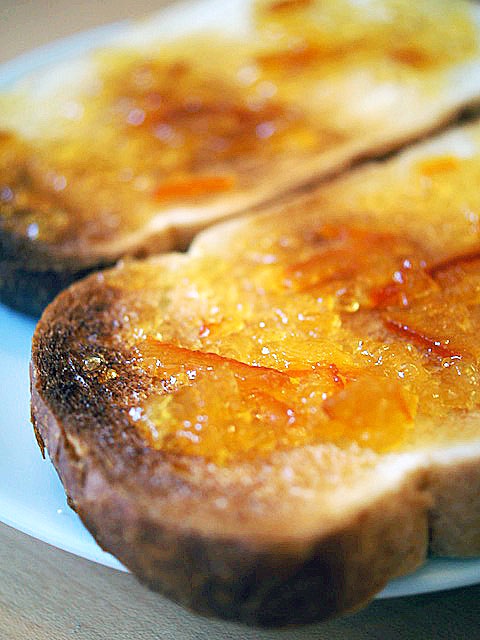 マーマレードを薄焼きトーストにのっけて食べる…、アールグレイティーがおいしく飲めそうです。