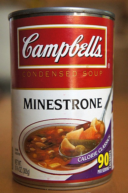 キャンベルスープのミネストローネを温める。
