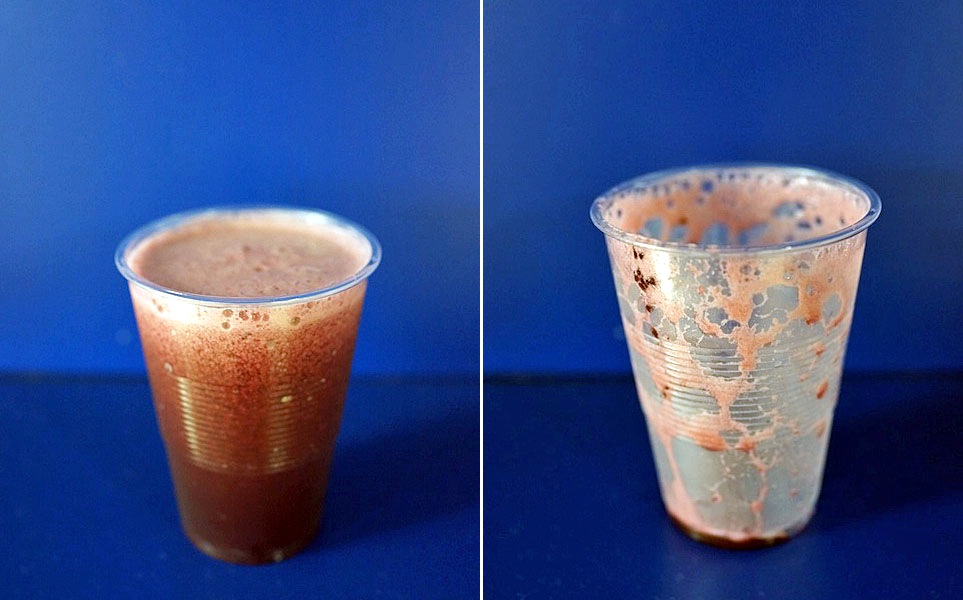 フルーツジュースではあるけれど、水と氷をかなり多めに入れてジャジャっと仕上げるジュース…、それでちょっと薄目だけれどどれを飲んでも150円。