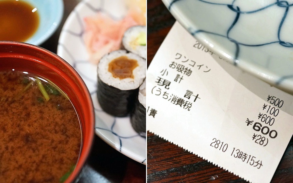 100円足すと赤出汁つきになるのがうれしく、それで今日は600円、値段以上の満足感をお腹に収めてお店をニコリとあとにする。
