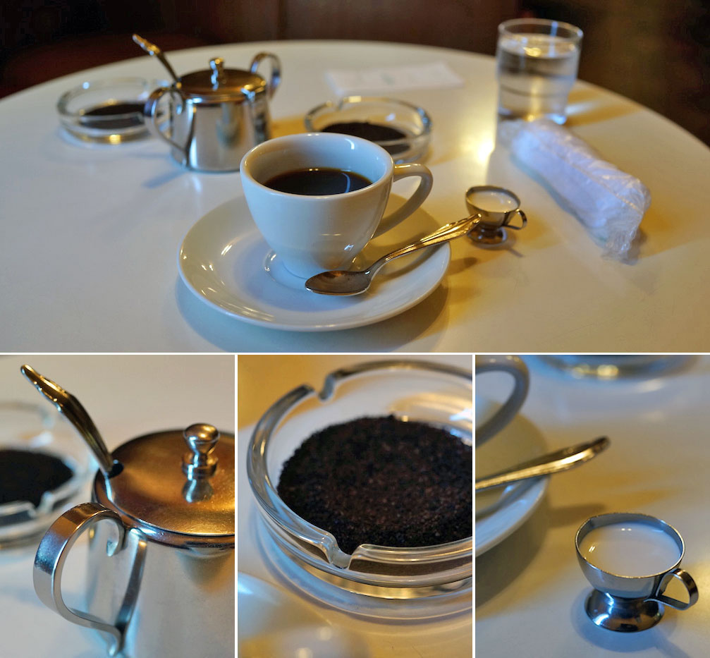 それにしてもピカピカポットに小さなピッチャー。スプーンもずっしり思い洋白。灰皿の中に挽いたコーヒー豆をタップリ入れて…と、ずっと変わらずこのままあって、これからずっと同じく変わらずいてほしいと思ったりする。オキニイリ。