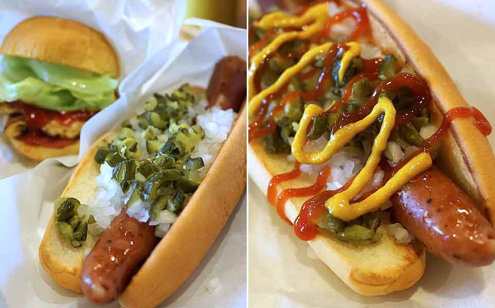メインは2種類…、ホットドッグにベーコンオムレツバーガーの小さなサイズ、どちらもスーパーフードスムージーにセットになっててお得な値段。