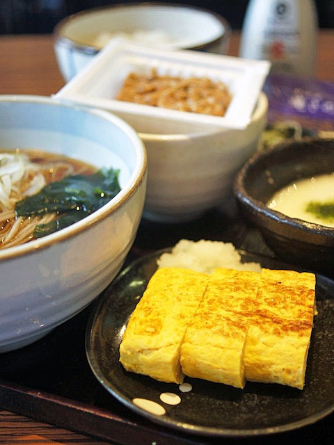 汁がドッシリ、出汁の風味がシッカリしてて時間がたってもあまり伸びない頑丈な蕎麦のなめらかと一緒になって朝においしい。