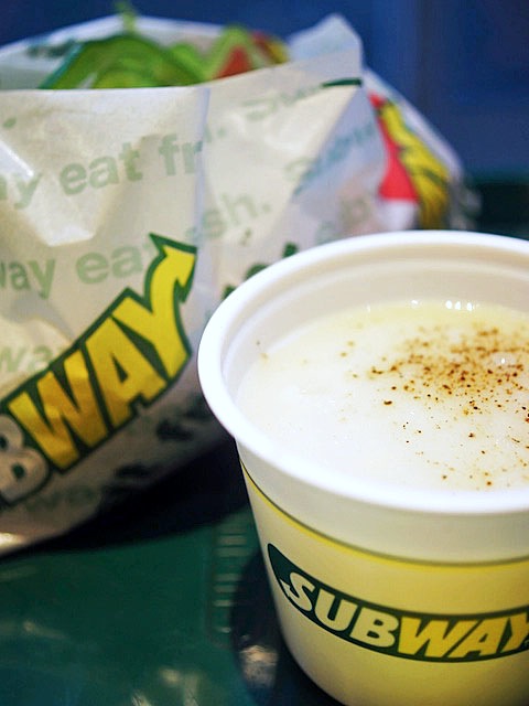 野菜をタップリ召し上がれ…、って今のサブウェイは朝のご飯をとるのにぴったり。