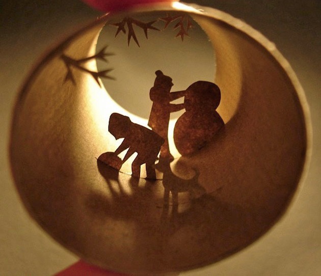 ロールの芯を使ってまずは絵を切り抜いて、それを芯の中に刺したり貼り付けたりする。
