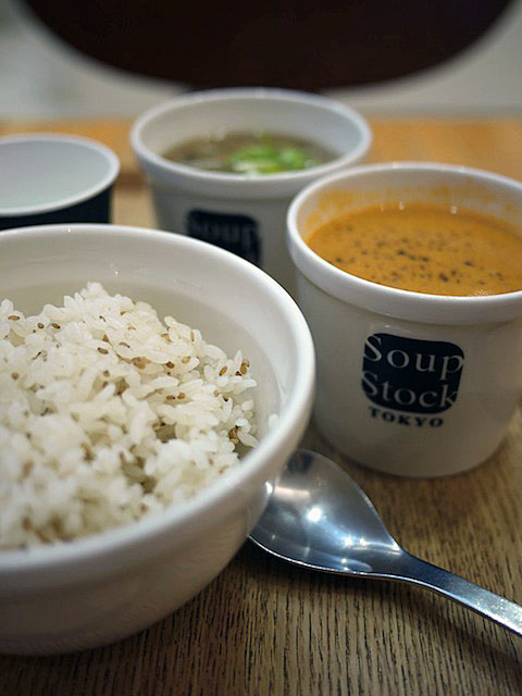 ちょっとお腹がすいてるようで、それで小さなスープを2つもらってご飯と一緒にセットにす。